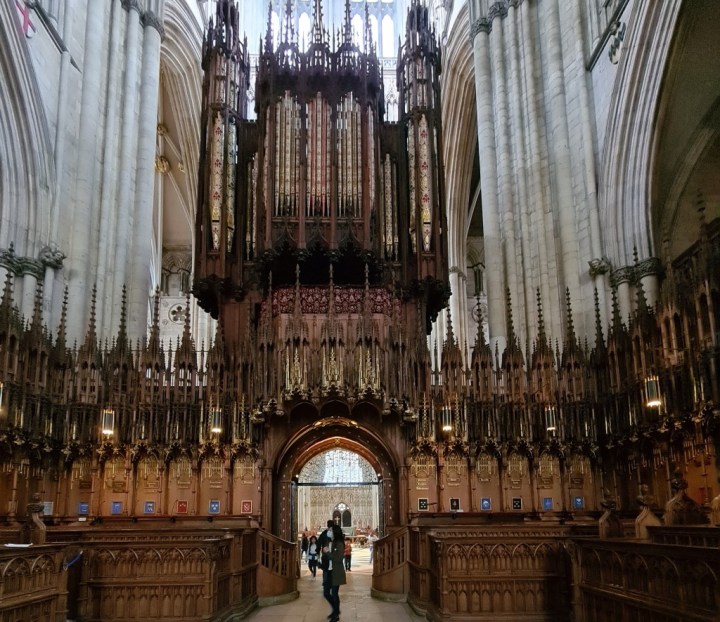 The Grand Organ in York Minster dates from the early 1830s and is one of the largest cathedral organs in the country. We were lucky to visit in Summer 2021, not long after the completion of a once-in-a-century restoration project. Whilst we did not hear it in action, the painted pipes were looking very smart.